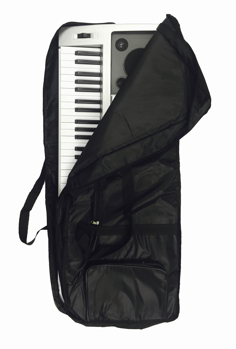 Ce sac de transport pour clavier portable en nylon rembourré noir convient aux planches de 61 notes. Le sac pour clavier électronique a une poignée de transport, deux bandoulières, une poche pour accessoires et une fermeture éclair géante.
