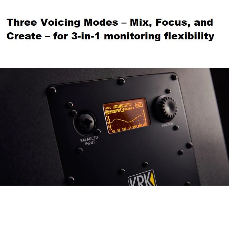 • Use with the KRK Audio Tools App: Acoustic Real-Time Room Analyzer and EQ Recommendation tool to help set the monitor for better, more accurate monitoring and faster mixing