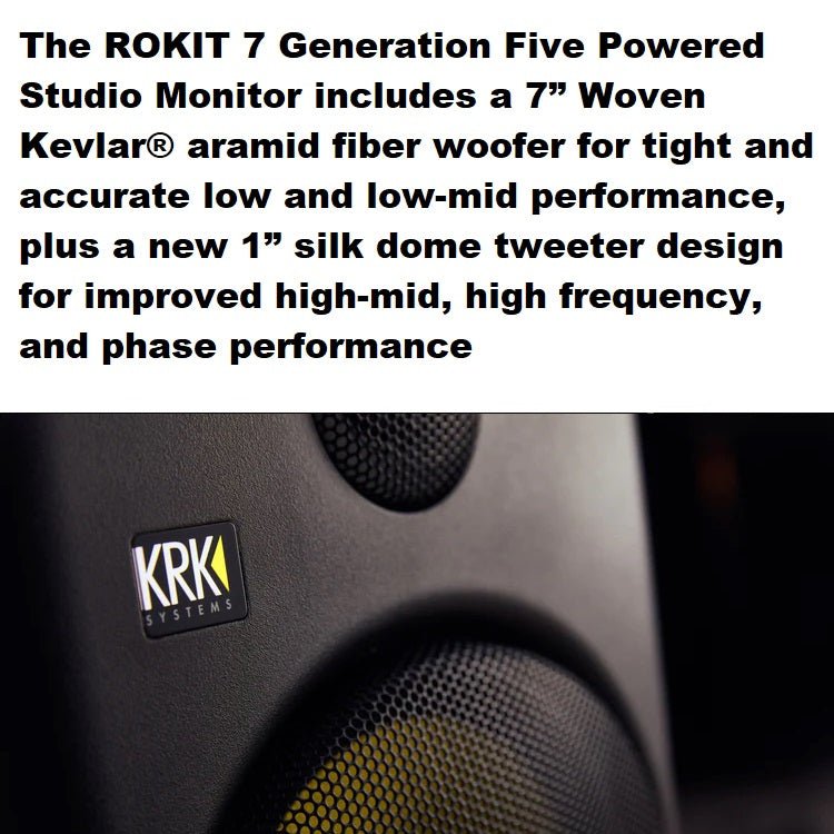 The world’s leading studio monitor manufacturer, KRK’s sonic accuracy and performance have made them the choice of professionals worldwide for over 35 years. Experience them for yourself, and you’ll agree–the KRK Systems ROKIT 7 Generation Five continues that tradition of sonic excellence.