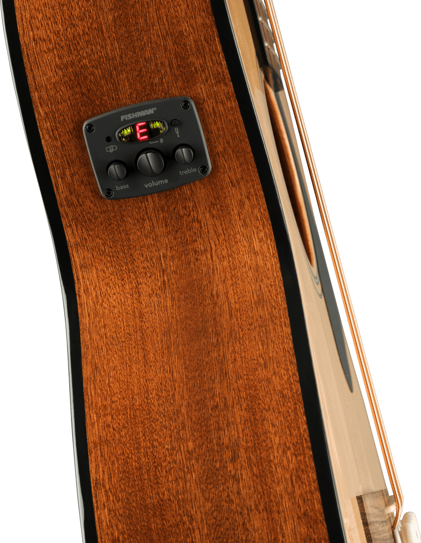 Strumming along has never sounded so good with this acoustic bass, designed for both stage and studio. Its concert-sized body boasts a solid spruce top and mahogany back and sides, delivering a smooth, articulate low end. The easy-to-play neck features rolled fingerboard edges for ultimate comfort, while the Fishman® electronics system ensures crystal-clear amplified sound. Get ready to lay down some serious grooves with this versatile and charming instrument.