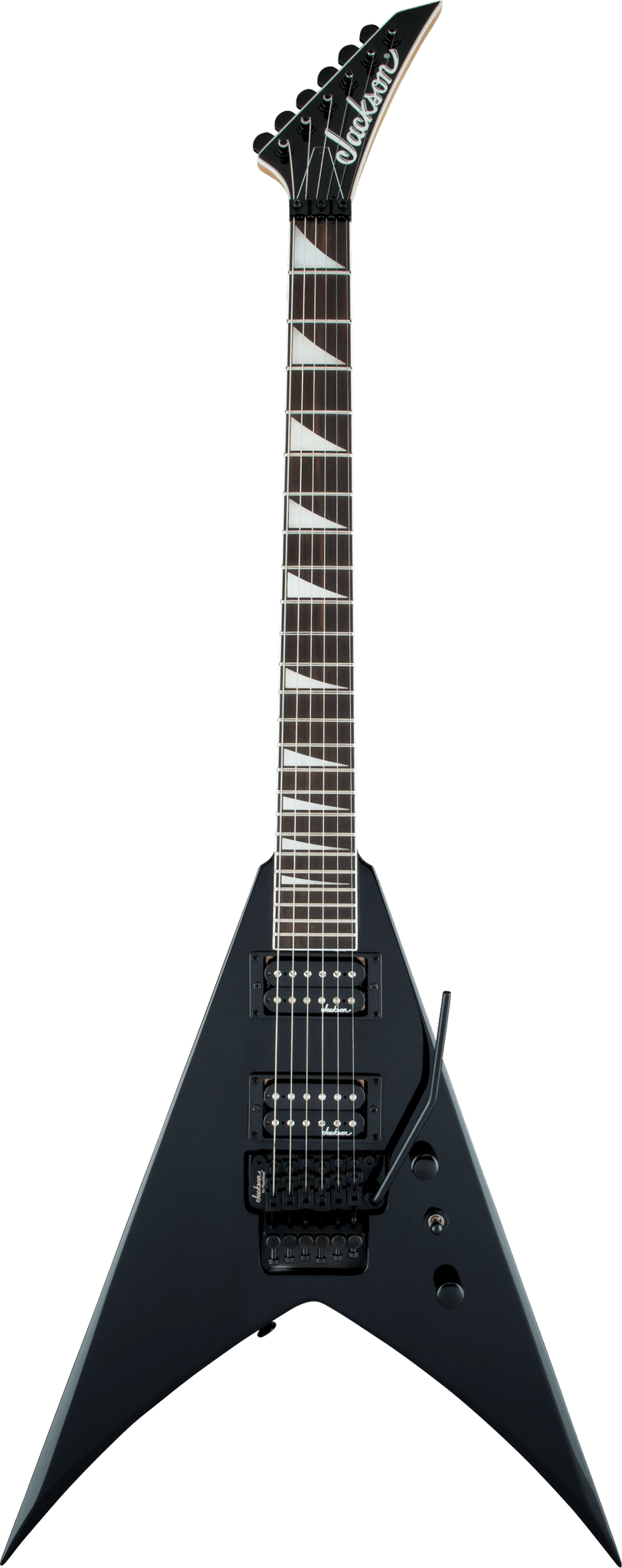 Other features include dual Jackson high-output humbucking pickups with ceramic magnets and three-way toggle switching, Jackson-branded Floyd Rose® double-locking tremolo bridge, standard strap buttons and sealed die-cast tuners.