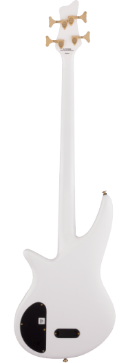 Featuring a unique 2x2 black headstock with an understated "J" logo, the budget-friendly SBXM IV comes in a classic Snow White finish with gleaming gold hardware.