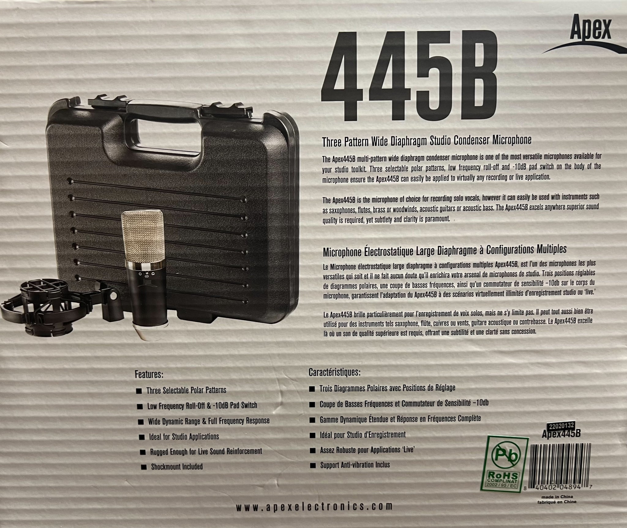 Apex 445B Microphone à condensateur de studio à large diaphragme à trois directivités