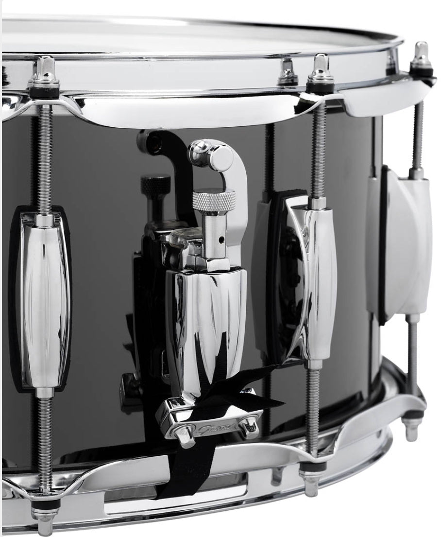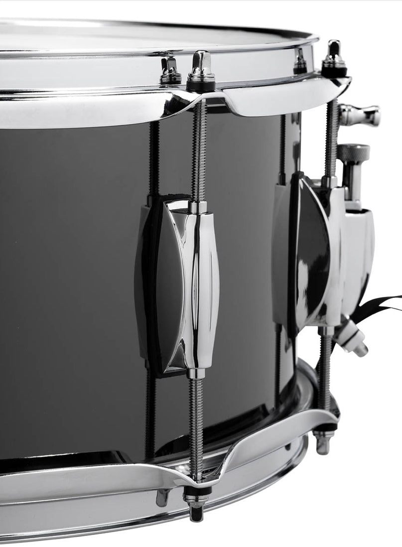 Our 6.5x14-inch Black Nickel over Steel snare drum offers an ideal balance of power, sensitivity, beauty, and value all in one snare drum. Taking advantage of its wide tuning range, you can achieve either a loose, slow and dry sound character or a very sharp, bold and bright attack. It features 2.3mm Triple flanged hoops, an adjustable throw-off, 20 strand snare wire, Remo® drum heads, and 45 degree bearing edges.