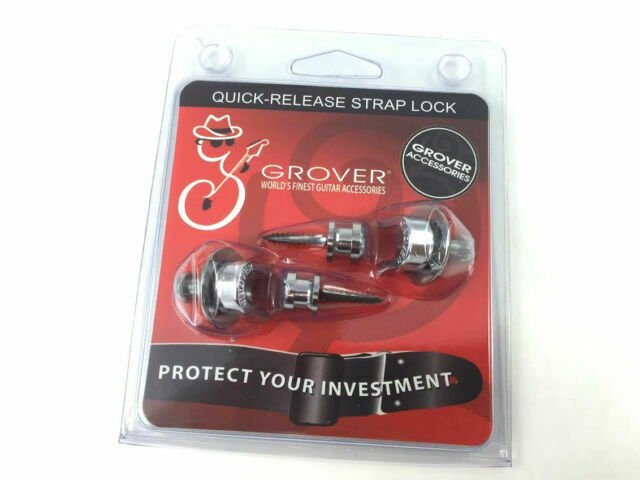 Confiez votre guitare à Grover Strap Locks. Ils maintiennent la connexion de la sangle de votre guitare en toute sécurité, avec une conception à dégagement rapide facile à utiliser. Les verrous de sangle Grover remplacent les boutons de sangle d'origine de votre guitare et sont faciles à installer sans aucune modification d'instrument nécessaire. Et parce qu'ils sont fabriqués par Grover, vous savez que vous pouvez compter sur les cadenas à sangle Grover.