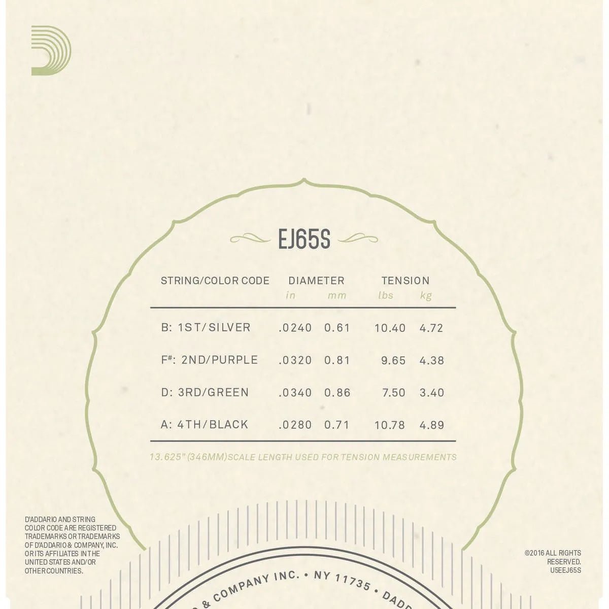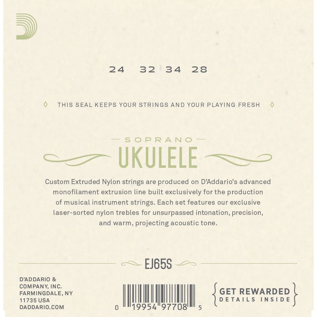D'Addario EJ65S is an all-nylon set designed for use with soprano ukuleles. Each string is manufactured on D’Addario’s own advanced monofilament extrusion line built exclusively for the production of musical instrument strings. This set is optimized for usage with traditional ADF#B tuning.