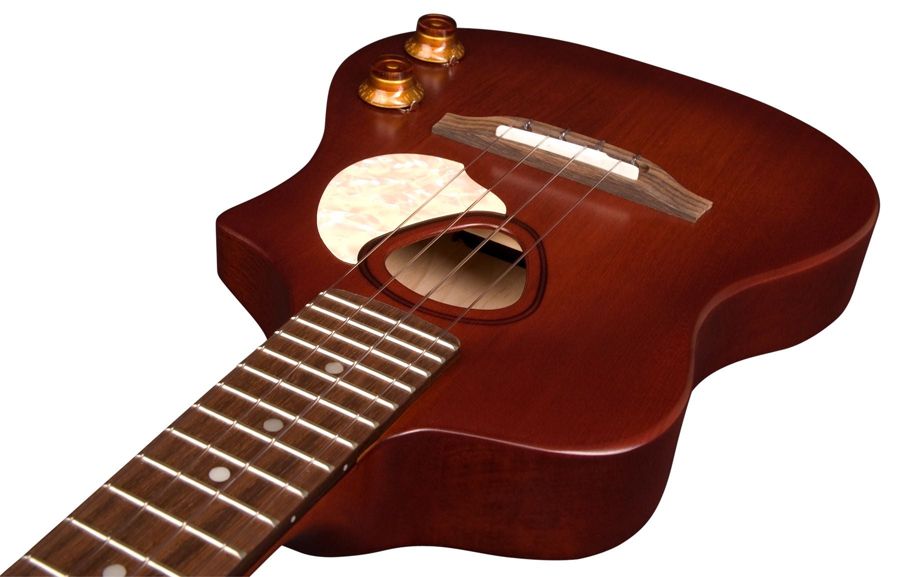 L'instrument offre aux joueurs une expérience de jeu de ukulélé unique qui couvre une gamme de styles et de techniques. De plus, un préampli propriétaire Seagull avec des commandes de volume et de tonalité supplémentaires situées à l'avant du corps, permet une superbe performance amplifiée.