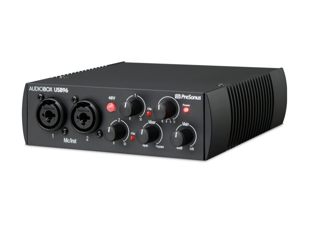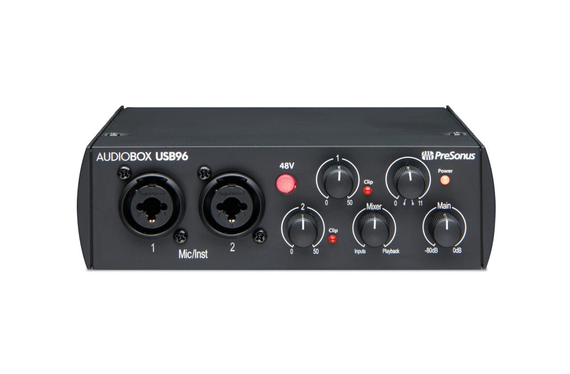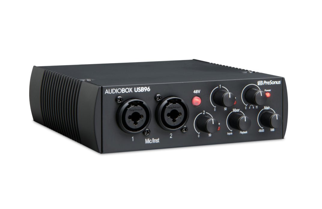 The "96" in AudioBox USB 96 refers to the expanded capabilities of PreSonus's ultra-affordable 2-channel interface, which allows you to record in full professional 24-bit/96kHz digital resolution. That makes the AudioBox USB 96 not only great for project studio recording, but it also makes it an excellent tool for serious engineers who need an inexpensive mobile recording interface for hooking up to a laptop and tracking overdubs and other tracks when needing to bring the studio to the source. And since it's fully USB bus powered, you don't even need to make room in your laptop bag for an extra power supply when you record on the go.