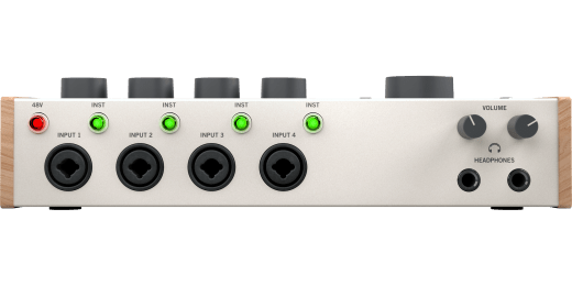 Volt 476P gives you simple 4 analog preamp inputs/4-out audio connections. Just plug your mics, guitars, or synths into the front panel. Then connect your speakers or headphones to monitor your audio with no latency. With Volt, youll be creating like a pro, fast.