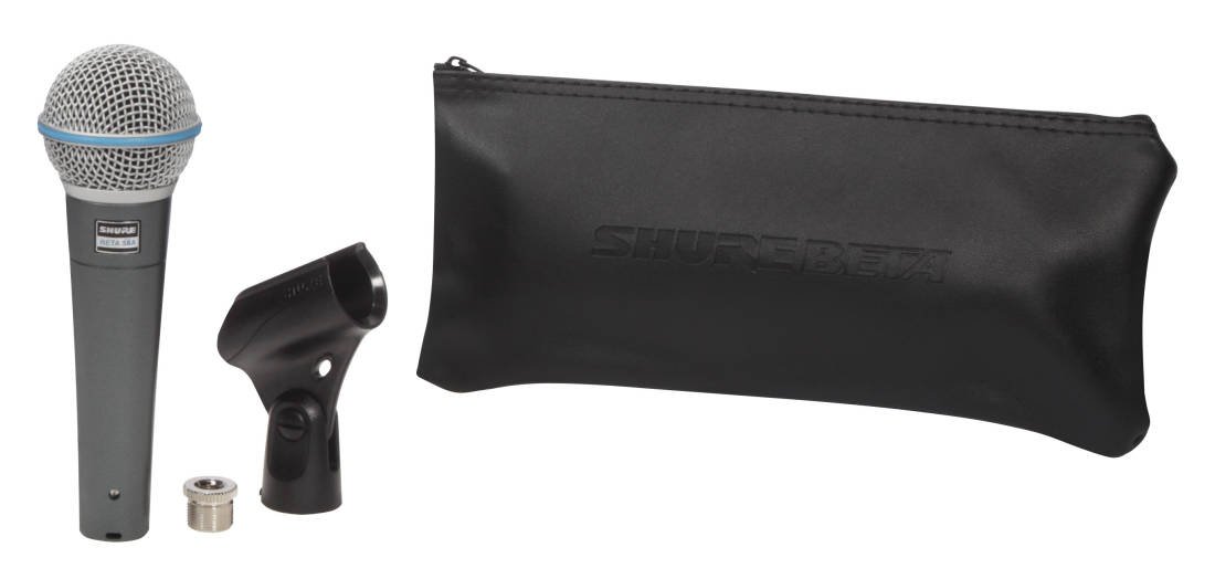 The Shure BETA58®A dynamic microphone is precision-engineered for vocals in professional live sound reinforcement and studio recording applications. A tailored frequency response accentuates the clarity of vocals, and a tight, supercardioid pickup pattern ensures high gain before feedback, maximum sound isolation, and minimum off-axis tone coloration.