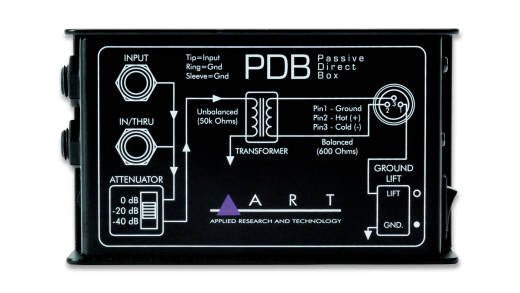 Le PDB Passive Direct Box est un DI solide et en état de marche pour la connexion des sorties d'instruments de musique électroniques (ou d'autres sources audio) aux entrées symétriques des consoles de mixage et autres entrées symétriques.