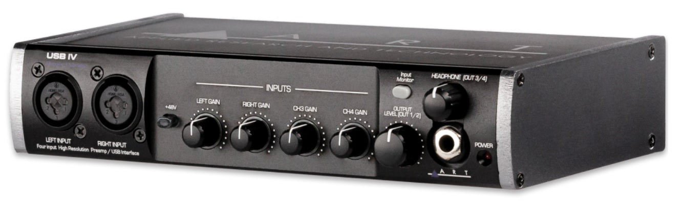 L'USB IV est une interface numérique de haute qualité à 4 entrées / 4 sorties 192 kHz. Les entrées peuvent s'adapter à n'importe quelle combinaison d'utilisations, y compris 4 entrées microphone ou deux entrées instrument Z élevées et deux entrées ligne