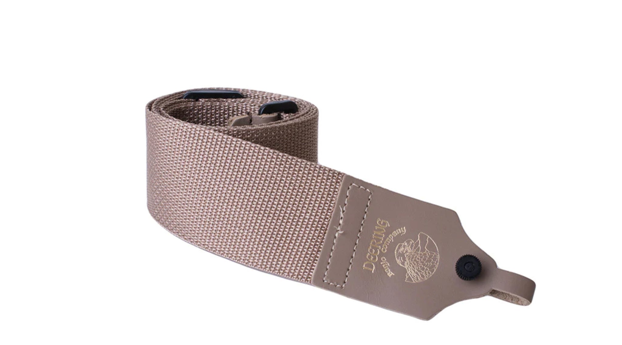 This strap comes in black, brown, or tan and features the gold embossed Deering Eagle logo on the front.