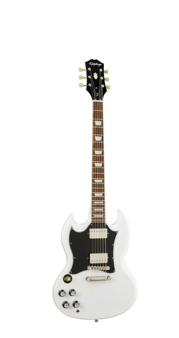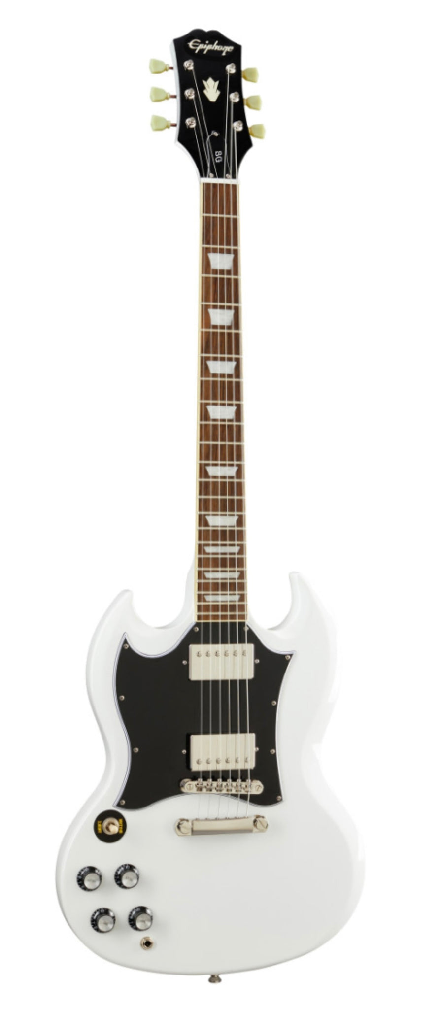 The Epiphone SG Standard from the new Inspired by Gibson Collection, recreates the legendary 1960s classic that powered the first generation of hard rock and heavy metal bands including The Who, Cream, AC/DC, and Black Sabbath. The guitar features the historic SG profile with "batwing" pickguard, a pair of Epiphone's Alnico Classic PRO™ humbuckers, and 18:1 ratio Epiphone Deluxe Tuners. This Epiphone Inspired by Gibson Original model also has the Kalamazoo headstock, rolled neck for a comfortable feel, GraphTech® NuBone™ nut, era-appropriate wiring, and CTS pots.