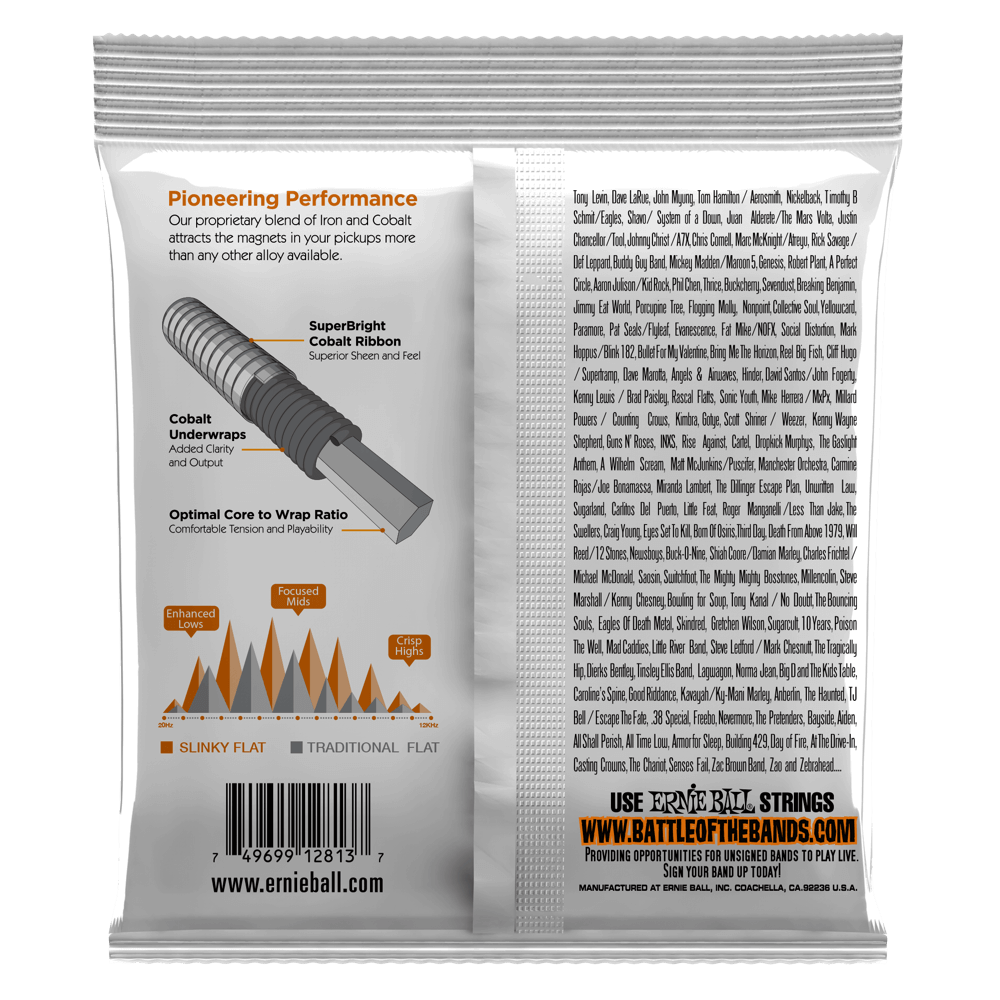 Les cordes pour basse Ernie Ball Slinky Flatwound combinent la douceur des plats traditionnels et la puissance du cobalt. Dotées d'une enveloppe de ruban SuperBright Cobalt, de sous-enveloppes Cobalt et d'un rapport optimal entre le noyau hexagonal et l'enveloppe, les nouvelles cordes de basse Flatwound sont les premières plates qui ressemblent réellement à un plat et sonnent comme un rond. Calibres .045, .065, .085, .105