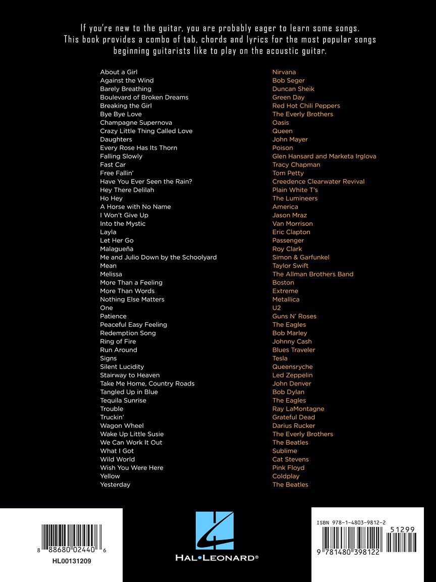 Si vous êtes nouveau à la guitare, vous êtes probablement désireux d'apprendre quelques chansons. Ce livre propose une combinaison de tabulations, d'accords et de paroles pour les chansons les plus populaires que les guitaristes débutants veulent jouer à la guitare acoustique. Inclut : Contre le vent • À peine respirant • Boulevard des rêves brisés • Supernova au champagne • Petite chose folle appelée amour • Chaque rose a son épine • Voiture rapide • Chute libre • Salut Delilah • Ho Hey • Je n'abandonnerai pas • Layla • Laissez-la partir • Méchant • Un • Anneau de feu • Signes • Escalier vers le paradis • Problème • Roue de chariot • J'aimerais que vous soyez ici • Jaune • Hier • et plus encore.