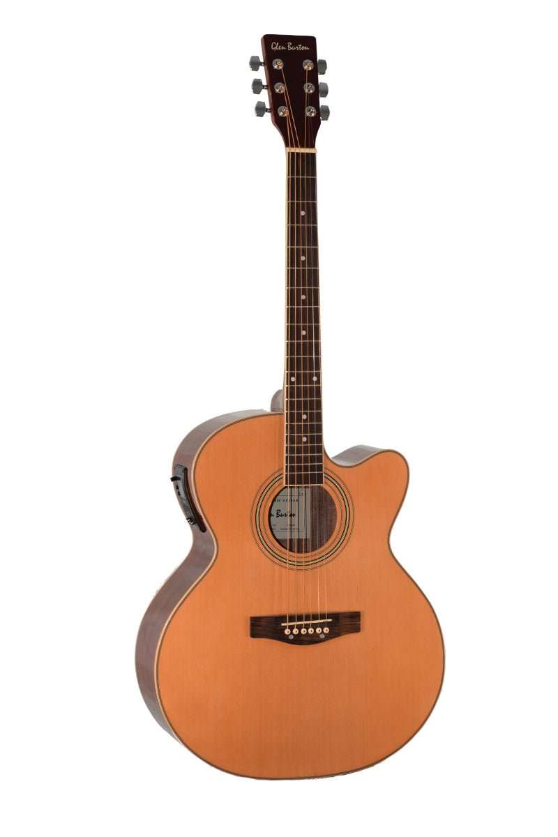 Glen Burton USA 6 string jumbo acoustic electric cutaway guitar with spruce top and sapele back sides