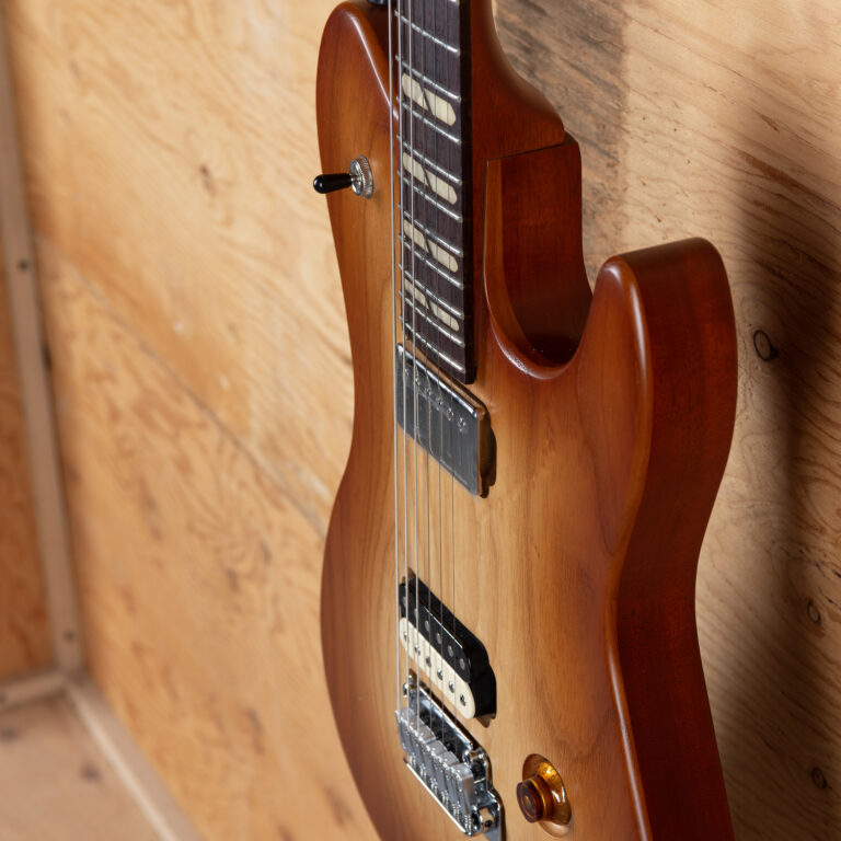 Proudly made in Canada, this two-voice guitar features a chambered Mahogany body, carved Swamp Ash top, 25.5” scale Mahogany neck and Rosewood Fingerboard.
