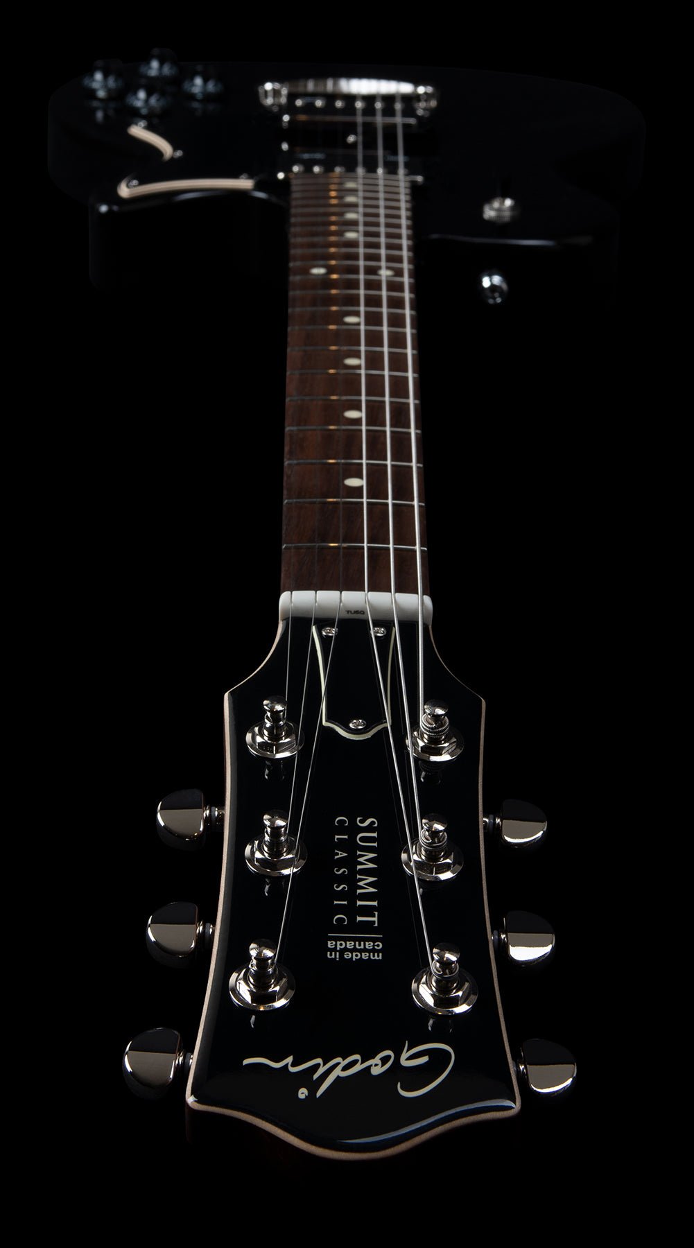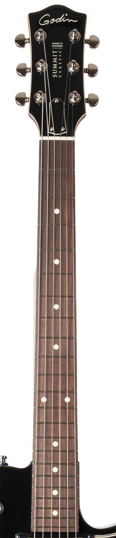 Le Summit Classic Black HG emballe à la fois l'écorce et le mordant avec des tons vifs et riches, grâce à son corps en tilleul laurentien canadien et ses humbuckers Godin Custom dans le cou et le chevalet. Une touche Ergocut Rosewood promet une expérience de jeu incroyablement confortable.