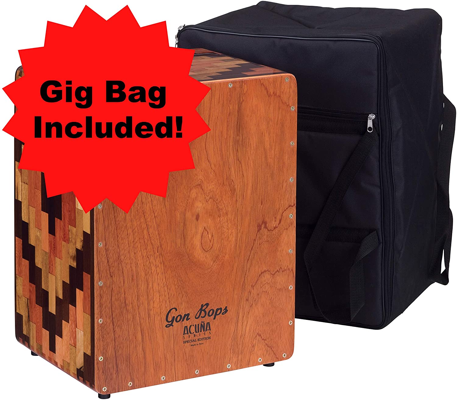 Ce magnifique instrument est également l'un des cajons les plus performants disponibles n'importe où. Ses basses profondes et résonnantes sont impressionnantes, mais jouer plus près des bords entraîne plusieurs niveaux de "claquement" lorsque les fils de cordes de guitare minimalistes sont engagés ? résultant en des effets vraiment sublimes. C'est parce que les fils sont configurés en diagonale dans les coins supérieurs du cajon pour réduire le son de caisse claire tout en jouant des basses. Un nombre accru de vis réglables se traduit également par un meilleur contrôle du claquement et de la résonance. La finition sans couture présente des coins en queue d'aronde en bois dur péruvien avec des joints arrondis en douceur. Et des carreaux de bois multicolores individuels sont disposés en une spectaculaire mosaïque de bois. Tout est fait à la main et méticuleusement testé par des artisans péruviens qualifiés dans notre boutique Gon Bops Cajon !