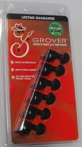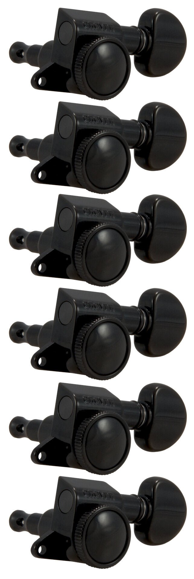 Grover 505BC6 Mini Roto-Grip Locking Rotomatics - Mécaniques pour guitare, 6 en ligne, côté basse (gauche) - Noir chromé