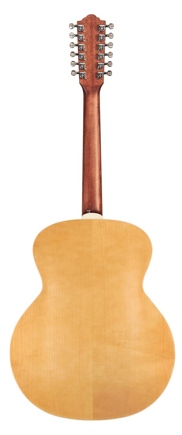 The F-2512E Maple combines two of Guild’s most iconic specialties: twelve string and jumbo guitars. With their large, rounded bodies, jumbo acoustic guitars have been Guild’s forte since 1954; combining this shape with the ever-popular 12-string construction results in a full-toned, impressively voiced acoustic instrument. Built with a solid spruce top, maple sides, and arched maple back, the F-2512E Maple has the bright, jangly tone characteristic of Guild’s twelve string guitars. Guild’s signature arched back design allows for great volume and projection, long sustain, and a lush, full sound. The F-2512E Maple features Guild’s Fishman-designed GT-1 Pickup System, a Pau Ferro fingerboard and bridge, bone nut and saddle, pearl rosette, period-correct tortoiseshell pickguard, and a satin polyurethane finish. Available in Natural.