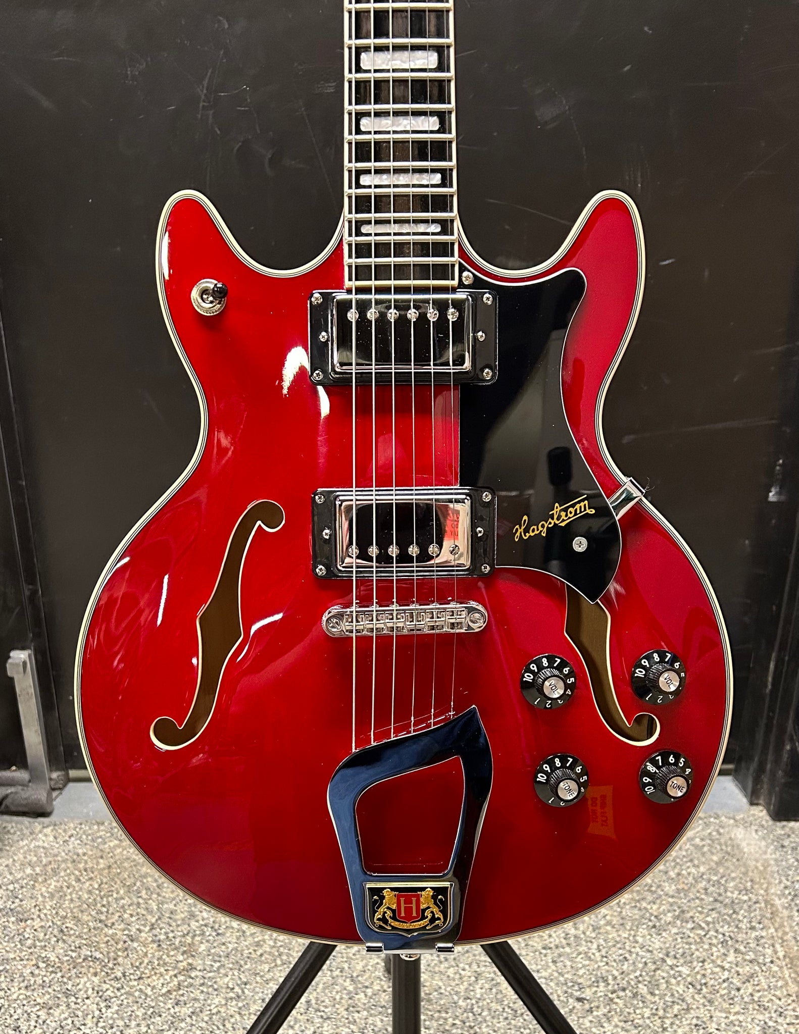 It’s sleek and slim multi-ply maple body and set maple neck, are key to delivering its sharp attack and long sustain. The dually equipped Hagstrom HJ-50 humbucking pickups transform this cool cat into a raging beast at the flick of a switch.
