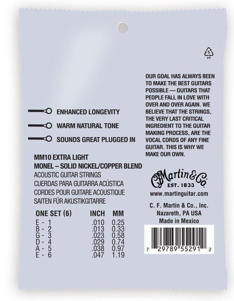 Les cordes Martin Retro® sont la vraie affaire. Pas une imitation. Avec les cordes Martin Retro®, vous obtenez un ensemble robuste qui offre un son vrai et cohérent et un son unique sur le marché. Le mélange solide d'alliage de nickel/cuivre de Martin offre une attaque de médiator réduite qui permet aux bois de tonalité de la guitare d'être entendus, et non éclipsés. Le fil d'enroulement Monel exclusif de Martin est naturellement résistant à la corrosion, vous pouvez donc les jouer pendant longtemps sans que rien ne gêne votre musique. Découvrez la vraie voix de votre guitare. Les cordes Retro® offrent une longévité accrue avec un son naturel chaud et elles sonnent bien lorsqu'elles sont branchées.