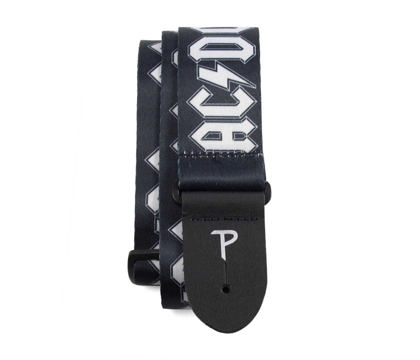 2” Official Licensing AC/DC White Logo On Black Heat Transfer Design on Polyester Webbing Guitar Strap.