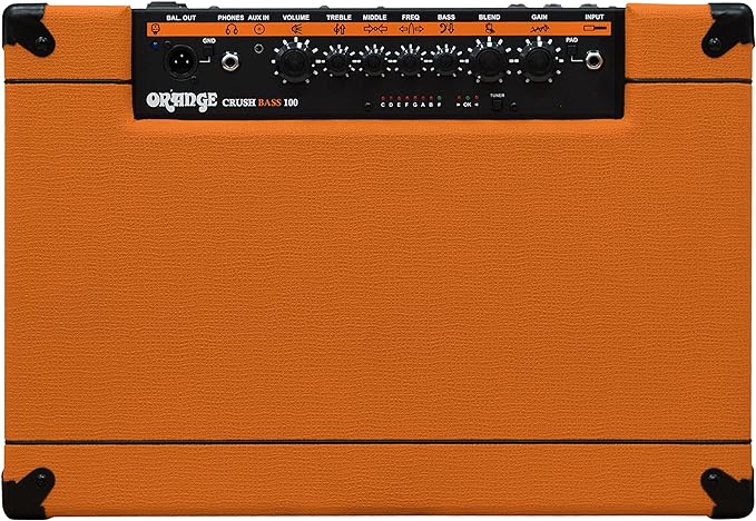 Orange Crush PiX CR100 BXT 100-Watt Bass Guitar Combo Amplifier with 1 x 15-inch Speaker includes Built-In Tuner The Orange Crush PiX 100BXT bass amp combo featuring the easy-to-follow hieroglyphic symbols which have been unique to Orange amplifiers. The 100 watt Orange CR100BXT Combo features a 15" loudspeaker and an Auxiliary Input for MP3/CD, and the CR100BXT also has a built-in guitar tuner. The ultimate combo practice amp, perfect for rehearsal or smaller gigs. The Orange Crush PiX combo combines portability with solid Orange construction and durability. The Orange Crush PiX 100BXT: