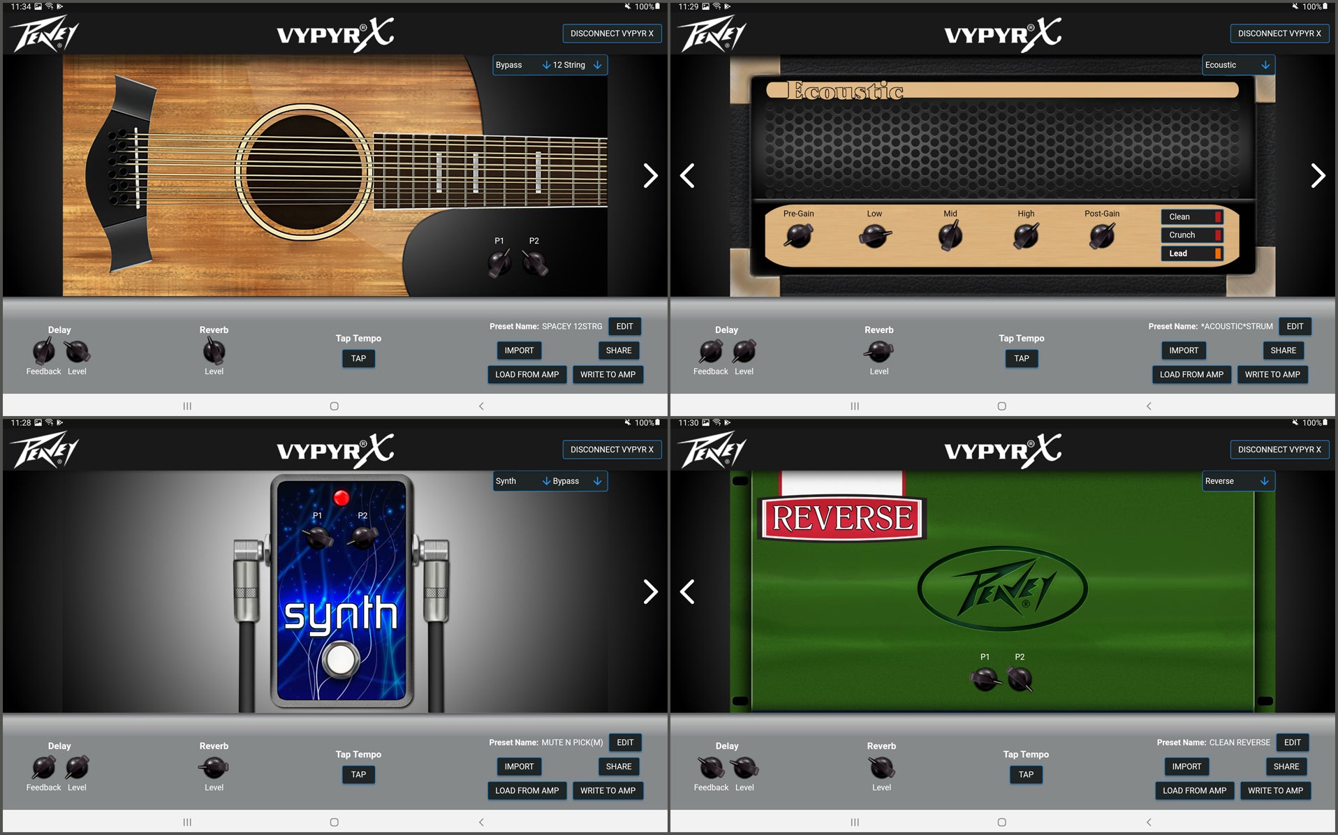 L'introduction du système de contrôle Vypyr X vous permet de gérer et de contrôler facilement votre ampli Vypyr X-series. Stockez, définissez et rappelez les préréglages ; ou utilisez la fonction de streaming pour compléter votre jeu avec une piste d'accompagnement, ajouter des parties complémentaires ou simplement jouer quelques morceaux. L'application exclusive Vypyr de Peavey est compatible avec les appareils iOS, vous permettant d'accéder facilement à la suite robuste de commandes Bluetooth à partir d'un seul endroit. Appuyez simplement sur le commutateur Bluetooth et maintenez-le enfoncé pour jumeler rapidement votre appareil, avec un indicateur LED bleu vous indiquant que vous êtes prêt. Le volume peut être géré depuis votre téléphone ou sur l'ampli, en équilibrant votre entrée avec le volume global de l'ampli pour un mélange optimal.