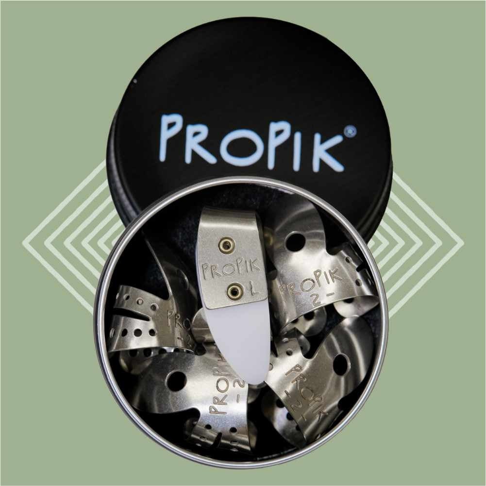 Hold all of your favorite picks in this compact and stylish screw-top tin that fits perfectly in your pocket or banjo case pocket. The tin is lined with felt padding to protect your picks and minimize the sound of jangling picks.