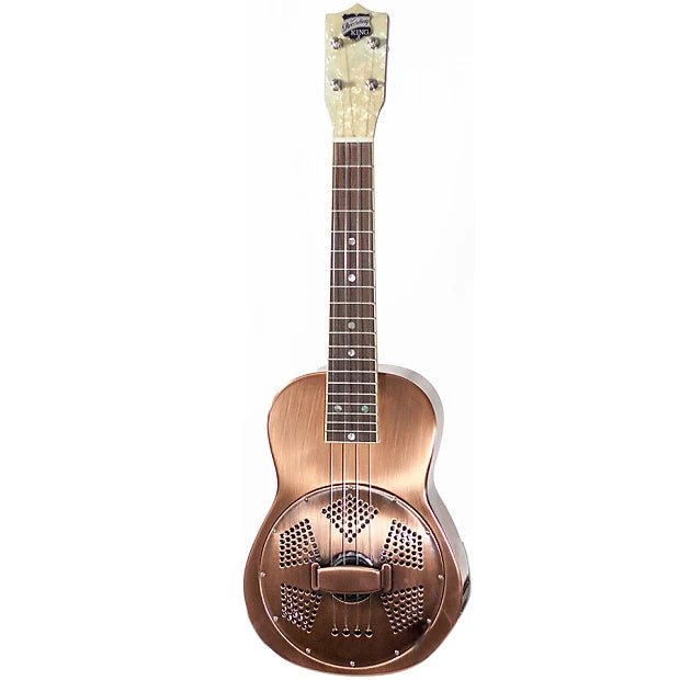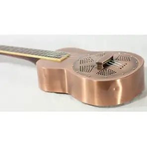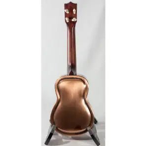Made from an entirely European bell brass body and featuring a 6" hand-spun Continental cone, this resonator ukulele adds a unique twist to the classic Hawaiian instrument. This rare model features a mahogany neck, rosewood fretboard, Champion-style friction tuners, pearloid headstock overlay and a bell brass coverplate.