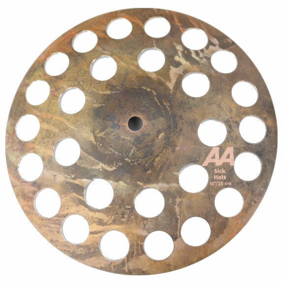 Les Sabian 10" AA Sick Hats comportent de grands trous dans la cymbale supérieure comme les 18" AA Sick Hats. Avec la version 10", le son du bâton est plus aigu avec le son sec, trash et luxuriant caractéristique des Sick Hats. Les chapeaux 10" sont multifonctionnels. Ils peuvent également être empilés d'une tasse à l'autre et utilisés pour un effet d'empilement rapide qui se montera sur n'importe quel support de cymbale.