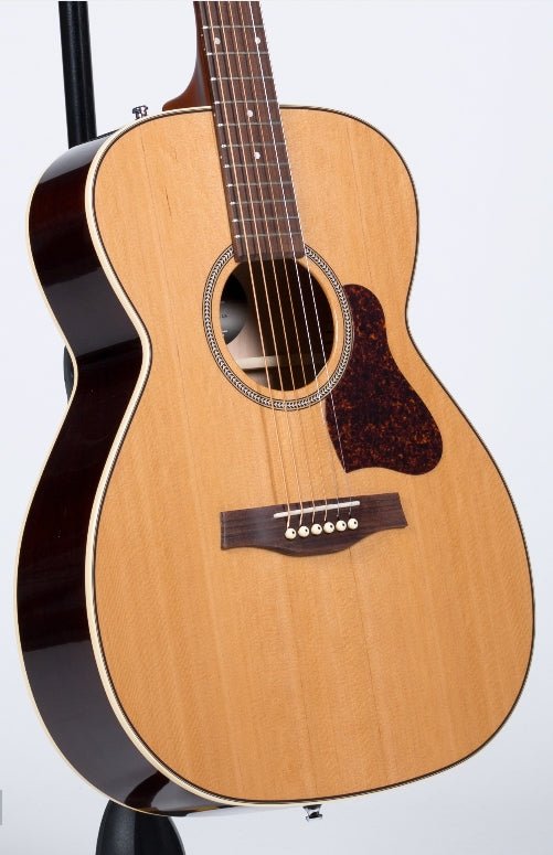 Cet instrument luxueux est doté d'un manche en érable à feuilles d'argent satiné lisse et fini à la main, d'un contreventement en épicéa Adirondack, des nouveaux tuners Seagull High Ratio, de l'électronique Fishman Sonitone, d'un écrou et d'une selle tusq et d'une touche et d'un chevalet en palissandre.