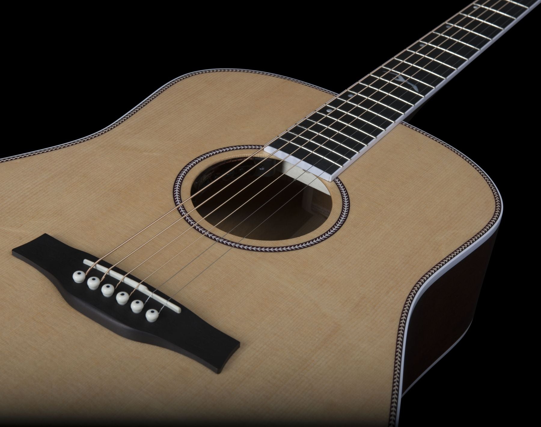 La Mosaic est une guitare à table en cèdre massif avec dos et éclisses en acajou massif.