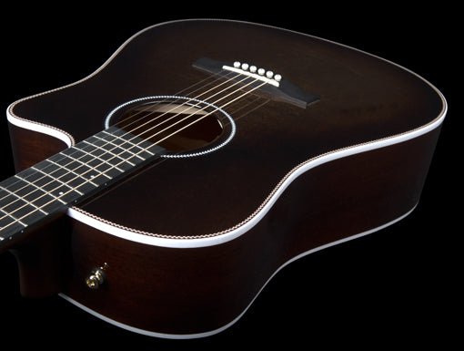 Le modèle Peppino Signature CW Bourbon Burst Anthem dispose d'une largeur de sillet extra large de 1,9", comme spécifié par Peppino, offrant un espacement des cordes plus généreux pour les joueurs de fingerstyle. Ce modèle comprend l'électronique LR Baggs Anthem.