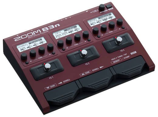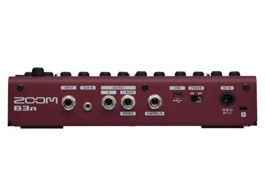 The Zoom B3n Multi-Effects Pedal for bass is pre-loaded with 67 high-quality stompbox DSP effects, including 19 dynamics and filter effects, 15 overdrive and distortion effects, 17 modulation effects, 11 delay and reverb effects and more. It's easy to integrate the B3n into any live performance or studio rig. In addition to a standard 1/4" input, there's an auxiliary 1/8" stereo input for connecting smartphones or music players. There's also a dedicated headphone jack for practice, and dual outputs for mono or stereo L/R connection to bass amps, PA systems, and audio interfaces.