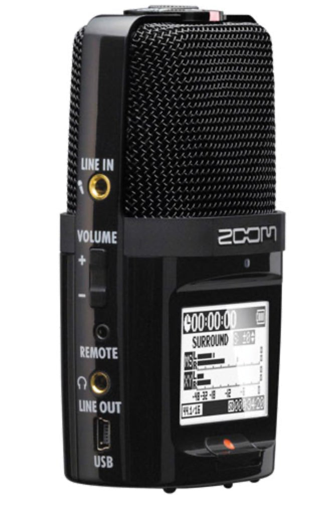 This Zoom H2N Handy Recorder features 5 built-in microphones and 4 different recording modes: X/Y, Mid-Side, 2-channel surround and 4-channel surround. Other advanced features include automatic gain control and onboard MS decoding, plus effects like compression, limiting and low cut filtering.