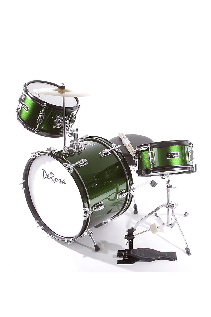 This DeRosa kids drum is perfect for kids 3 to 8 years old. And its durable quality will hold up to your child's playing. With real birch wood shells, fully tunable top and bottom heads and black plated real metal hardware!